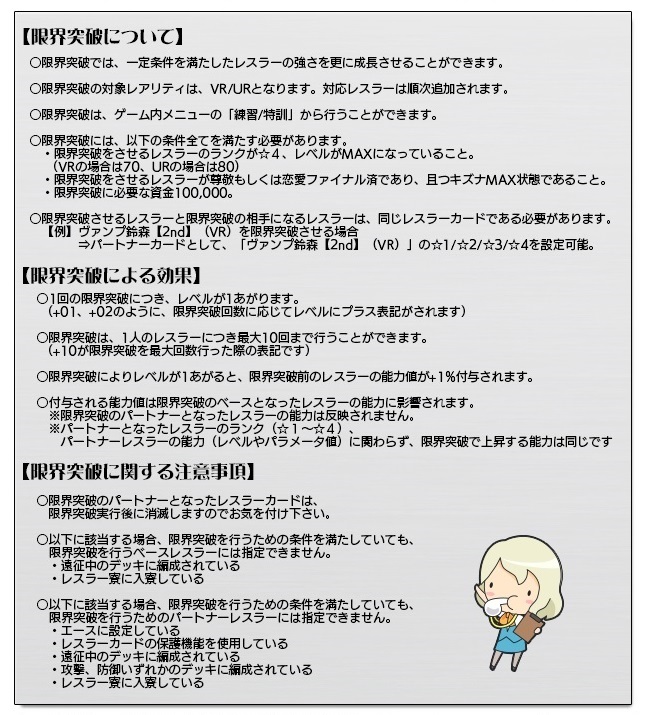 1回の限界突破につきレスラーの最大Lvが1上昇する。